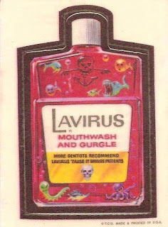 This cloth set contains the same stickers as the 1st Series of Wacky Packages, other than the checklist has the Mrs. Klean misspelled on one of them, I think it is the cloth series. Either way, here is the link for more info on the cloth series. I do not own any series 1 (regular) or Series 2. But one day I will just to try to complete the entire run.