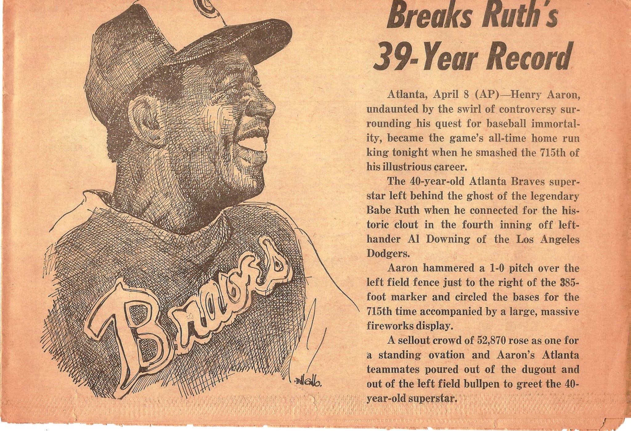 1. The last 3 weeks hit Braves hard. Aaron today, Sutton (played a little, but announced a lot for the Braves, and Knucksie. Just in the last 3 weeks.